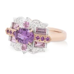 We create many pieces using diamonds, but we specialise in coloured gems. The more colourful and rare, the better!