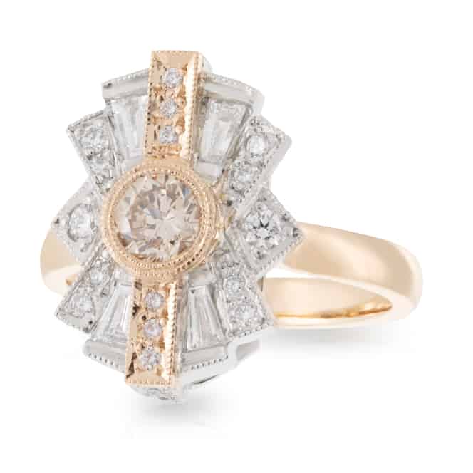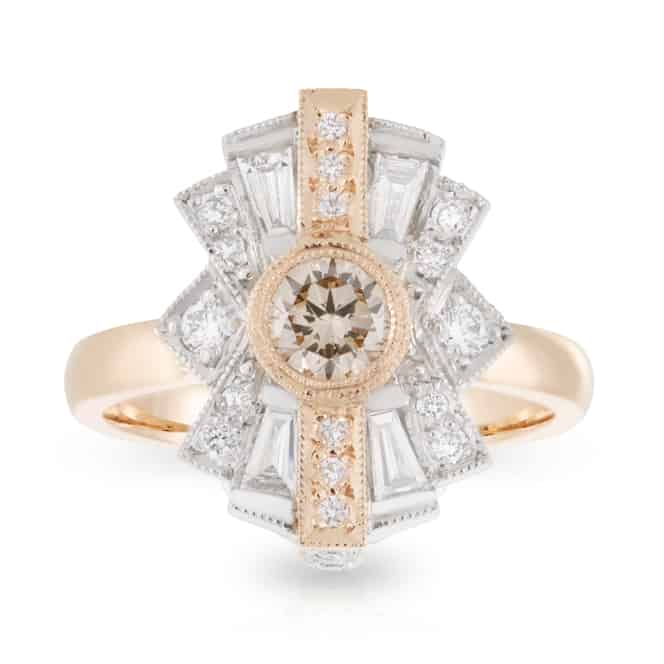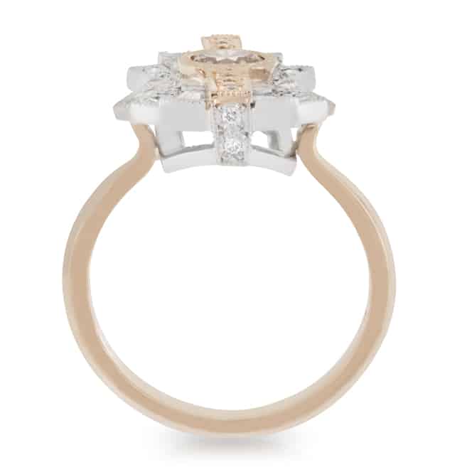 C2 coloured Cognac and Diamond Sunrise Engagement Ring