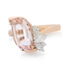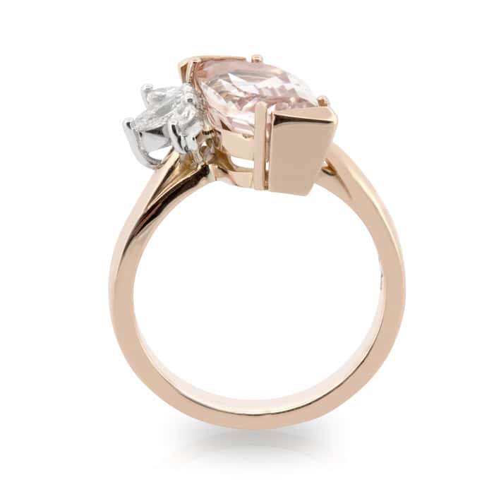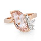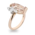 3.20ct Flame Cut Morganite with a Marquis shaped Diamond set and Leaf Motif asymmetrical style ring.