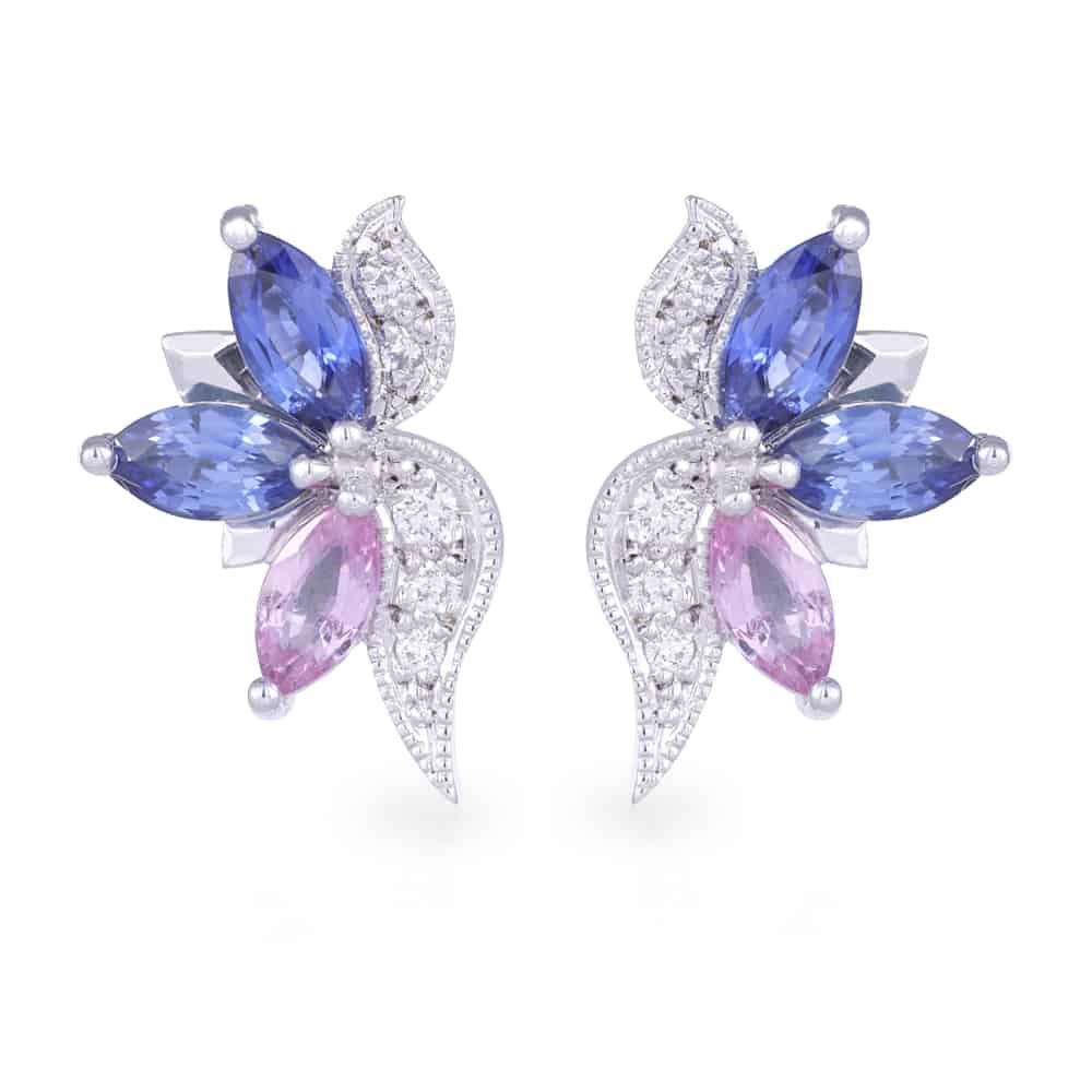 Angelique V2 Blue/Pink Sapphire, Tanzanite and Diamond Studs