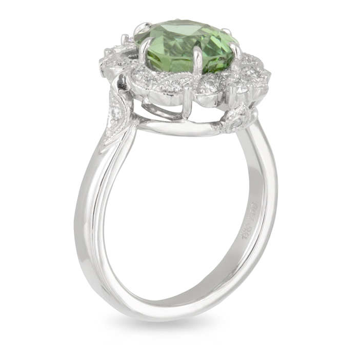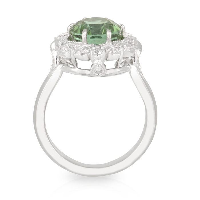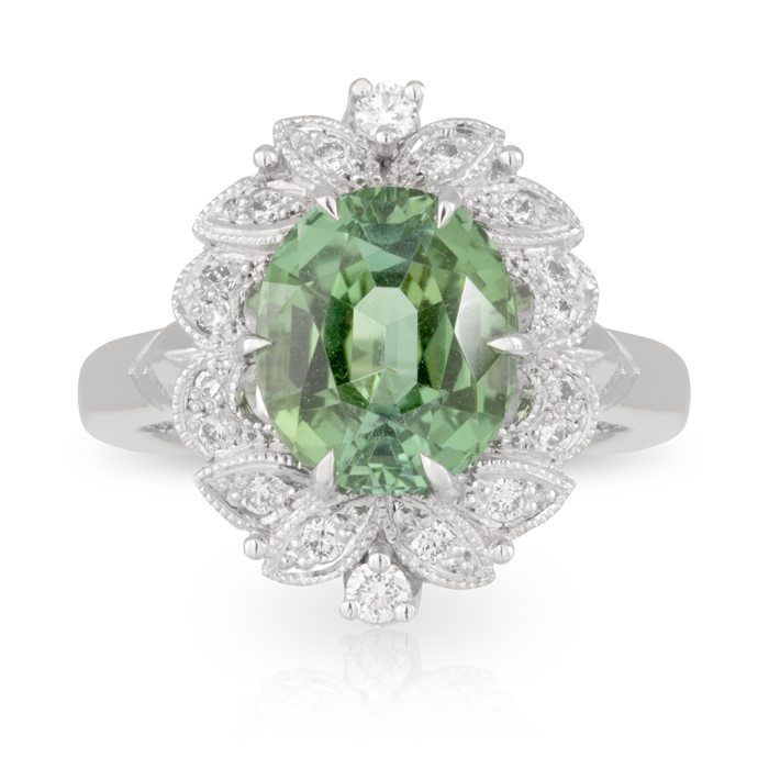 Oval 3.91ct Green Tourmaline with Art Deco Diamond Halo