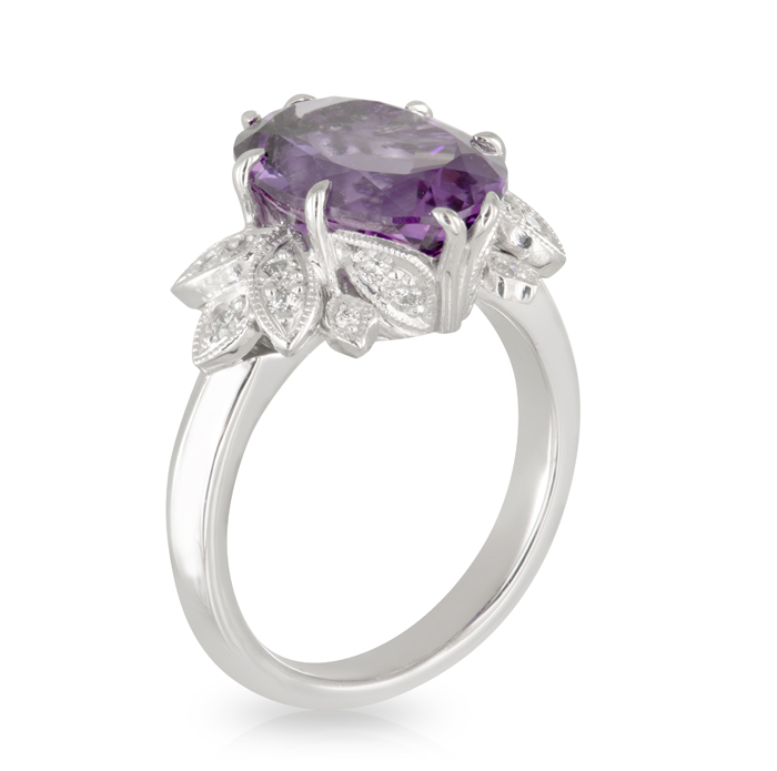 Oval 5.40ct Amethyst and 0.28ct Diamond ‘Wings’ Style Dress Ring