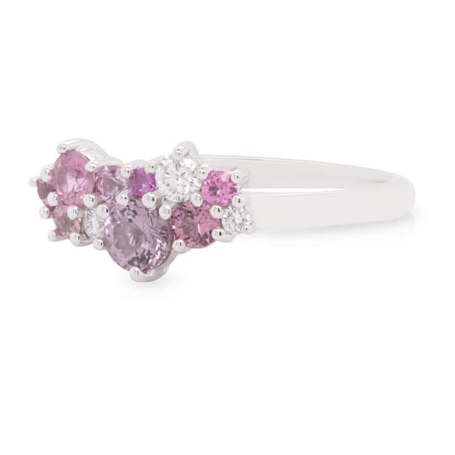 18ct White Gold Pink Spinel and Diamond Bubble Ring. TDW 0.18ct