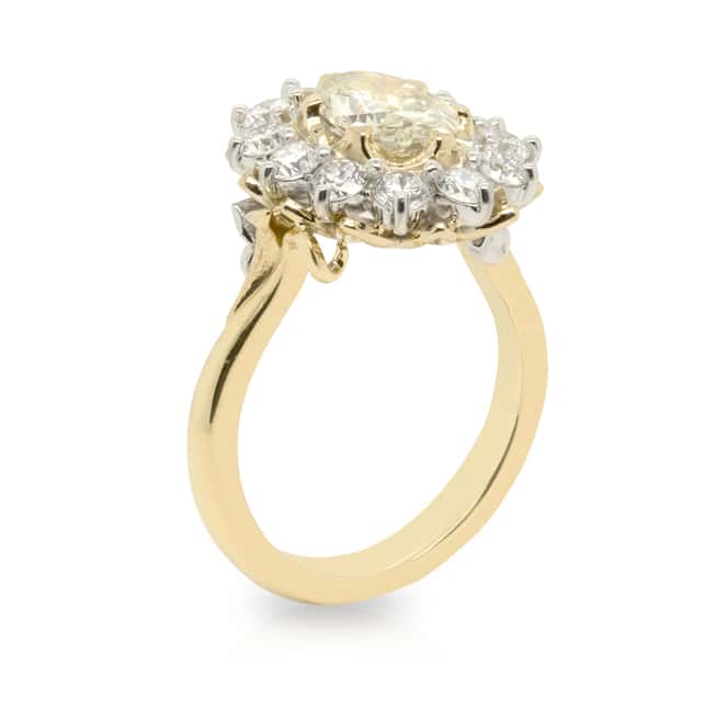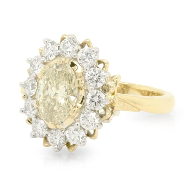 1.53ct Oval N/VS2, White Diamond Halo and intricate basket feature Engagement Ring