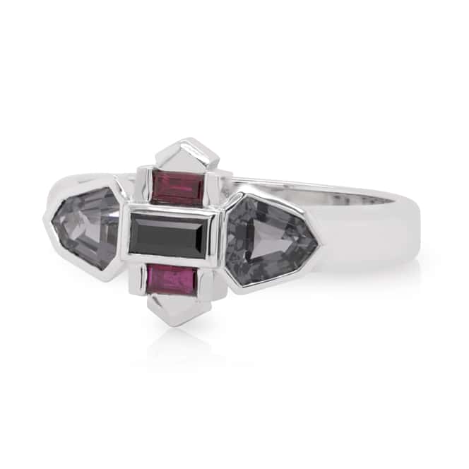 Black Spinel, Ruby and Grey Spinel Dress Ring.