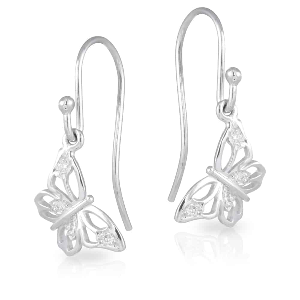 Butterfly Diamond Drop Earrings on removeable sheppard hooks