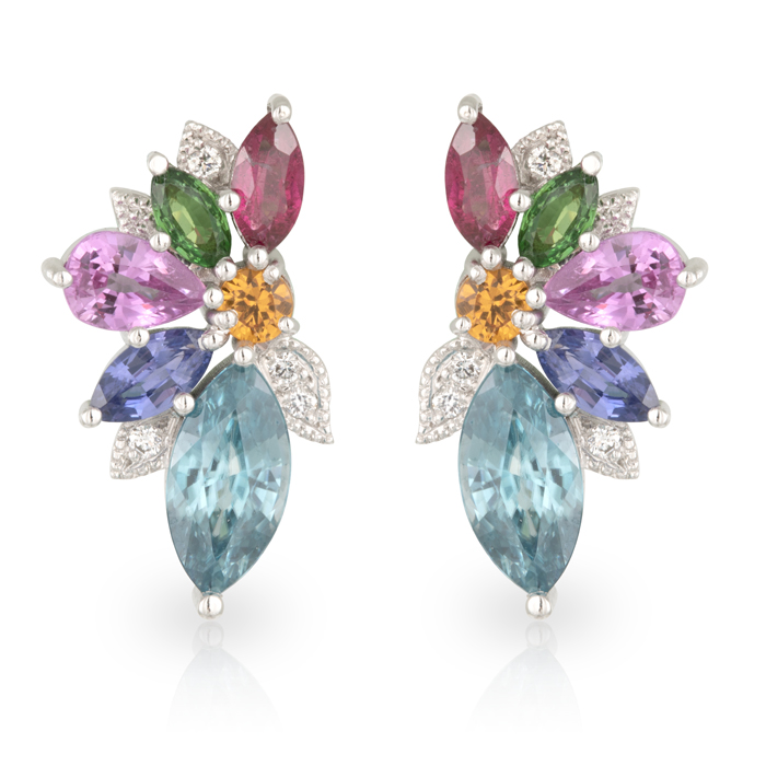 Blue Zircon, Tsavorite and Mandarin Garnet, Purple/Pink/Blue Sapphire, Rubellite Tourmaline and Diamond