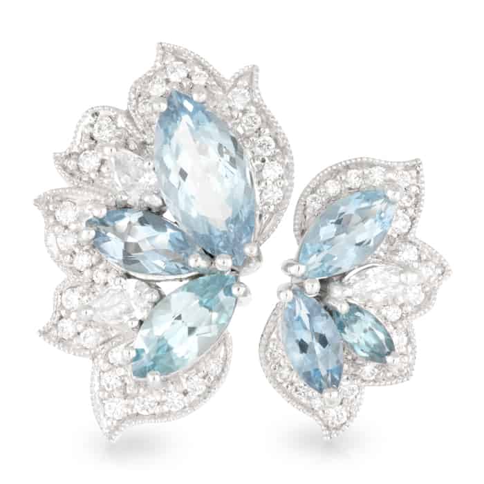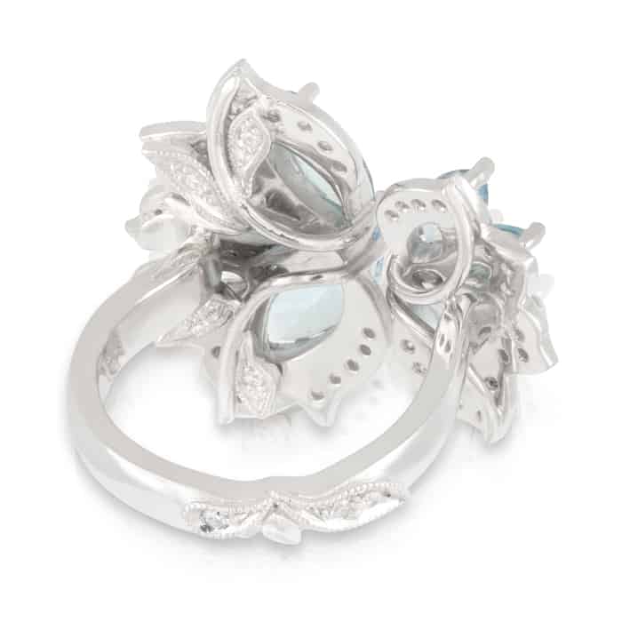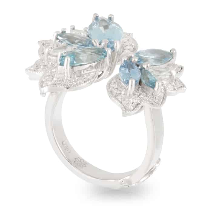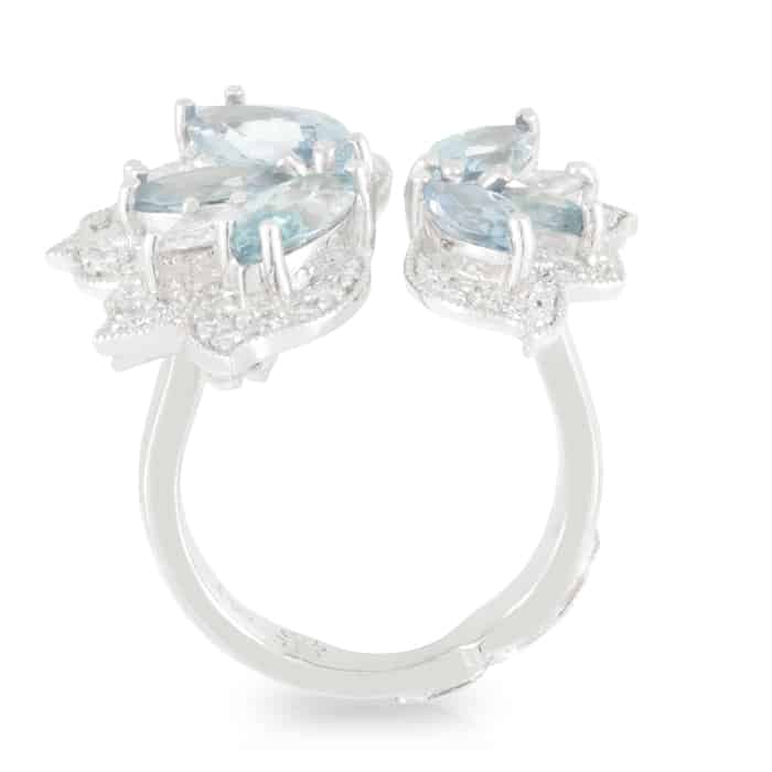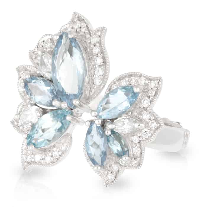 ‘Angelique’ style ring with Aquamarine, Blue Zircon and Diamonds.