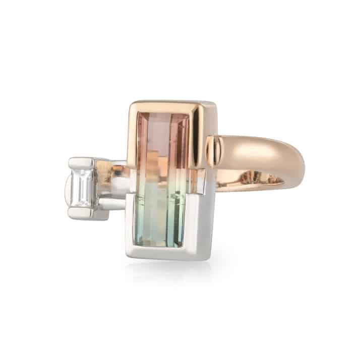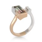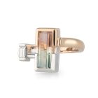 Asymmetrical Watermelon Tourmaline and Baguette Diamond Dress Ring