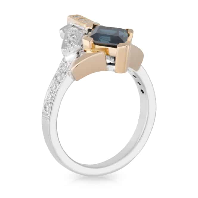Kite Cut Australian Blue Sapphire & Diamond Engagement Ring
