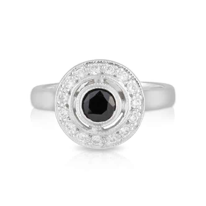 Black Spinel and Diamond Ring