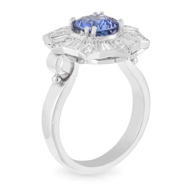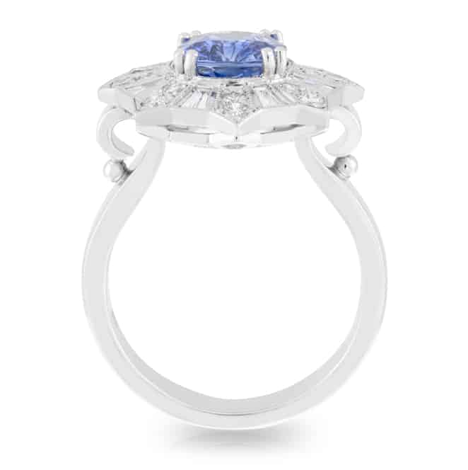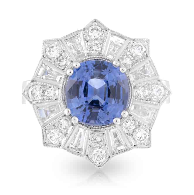 2.30ct Cushion cut Blue Ceylon Sapphire and Art Deco Diamond Fireworks Engagement Ring