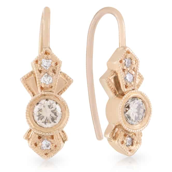 Cognac Diamond centres with Diamond Art Deco Halo Hazel style Drop Earrings