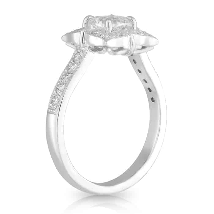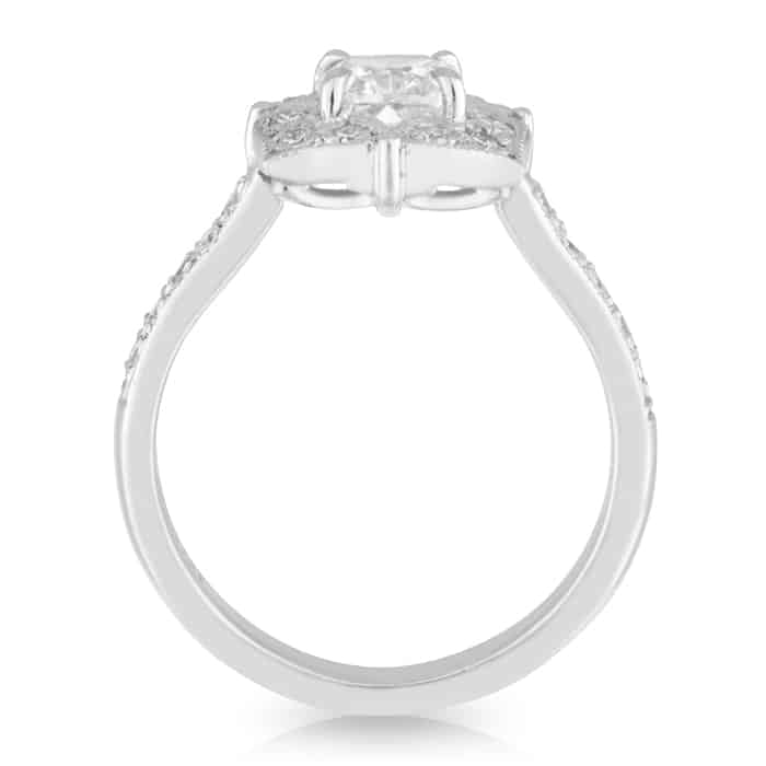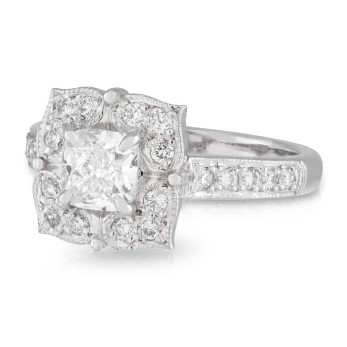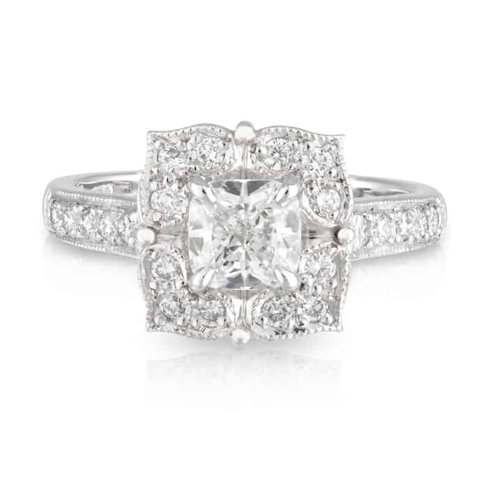 0.82ct Cushion Cut Art Deco Floral Halo Engagement Ring