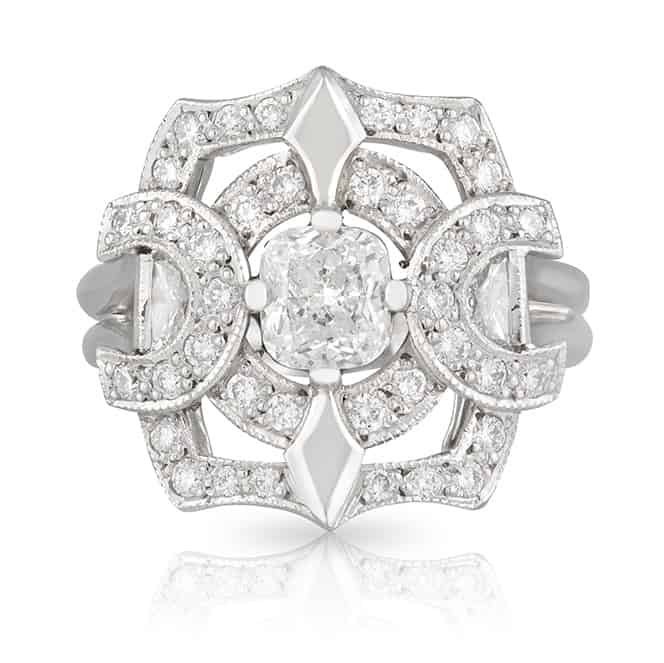 0.97 Cushion Cut Diamond Art Deco Dress Ring