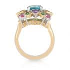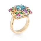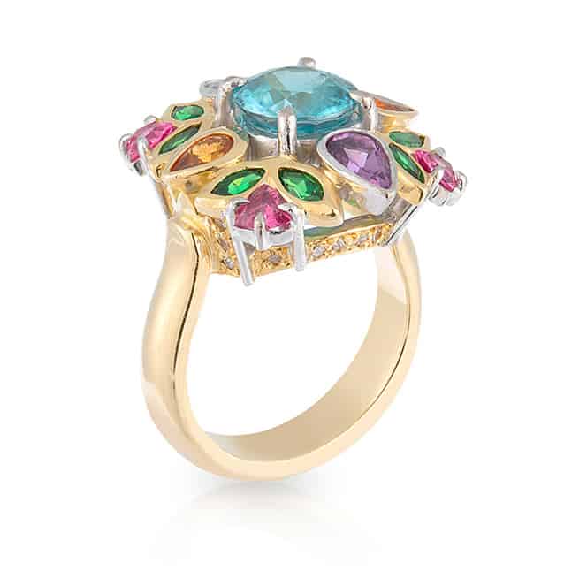 3.36ct Blue Zircon Fruit Salad Dress Ring with Pink Spinels, Tsavorite Garnets, Spessartite Garnets, Purple Sapphires & Diamonds
