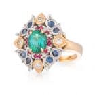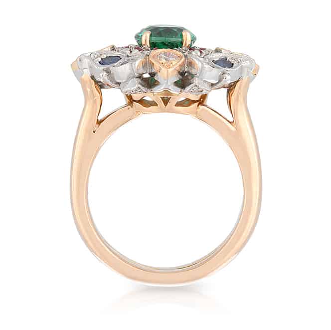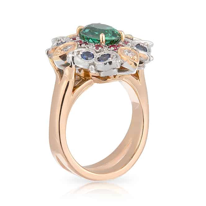1.96ct Mint Tourmaline Fruit Salad Dress Ring with Purple/Blue Ceylon Sapphires, Pink Spinels and Diamonds