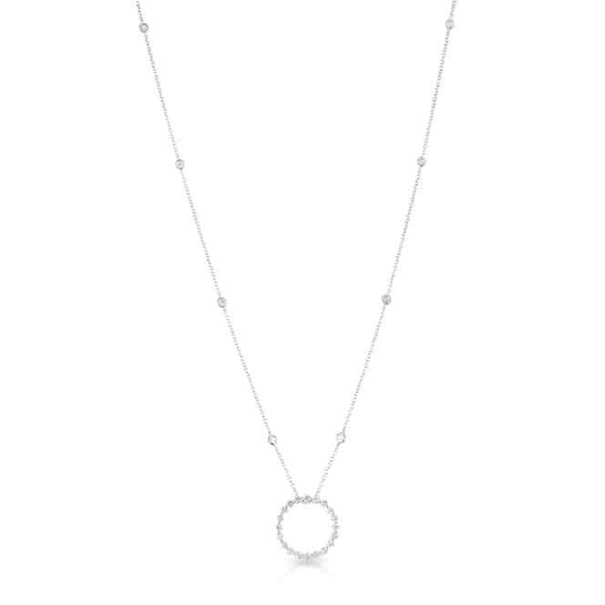 Graduated Diamond Circle Pendant on Bezel Diamond Chain