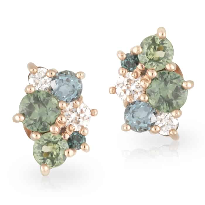 Hazel Mini Bubble style Green Parti Sapphire and Diamond Studs