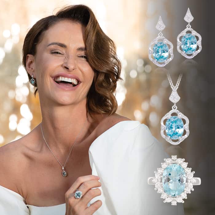 Oval 3.07ct Blue Zircon and Diamond Halo with Diamond Top Drop Earrings.