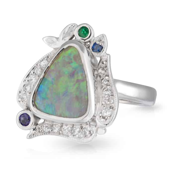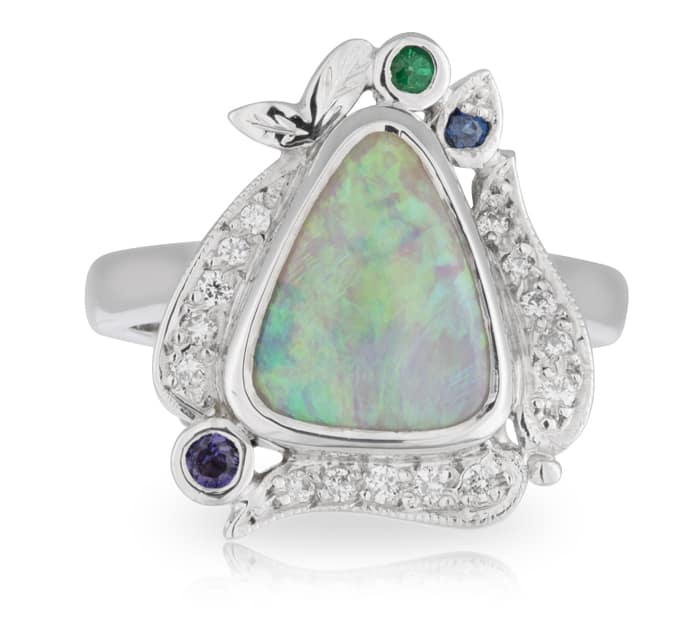 Opal Sapphire Tsavorite Garnet and Diamond Ring