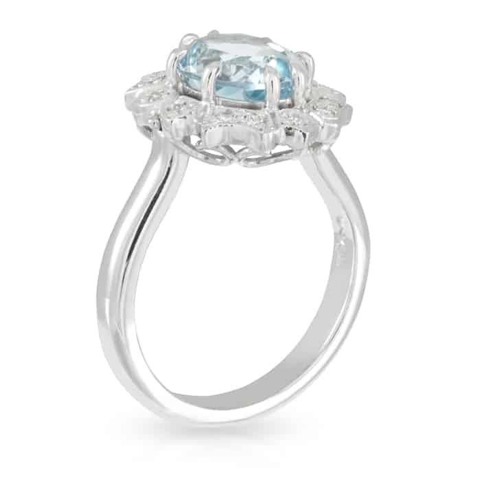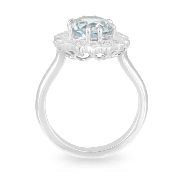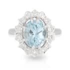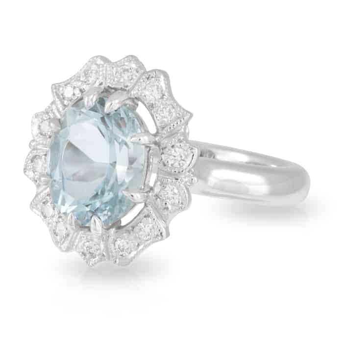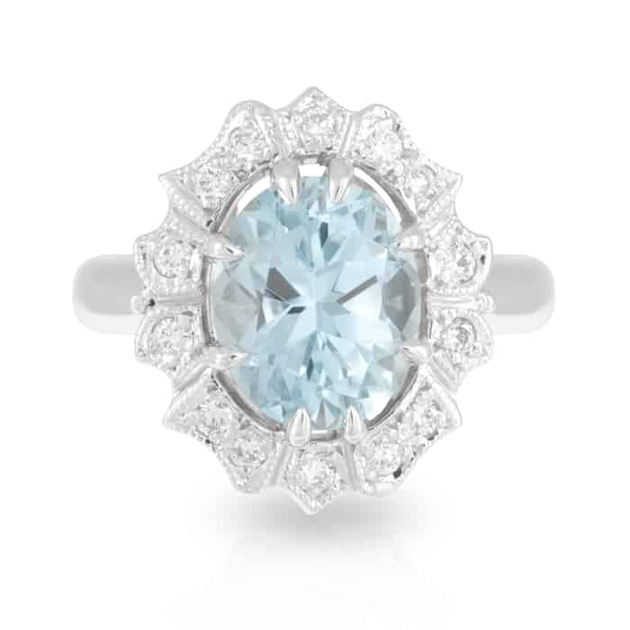 2.63ct Oval Aquamarine and Art Deco Diamond Halo Ring