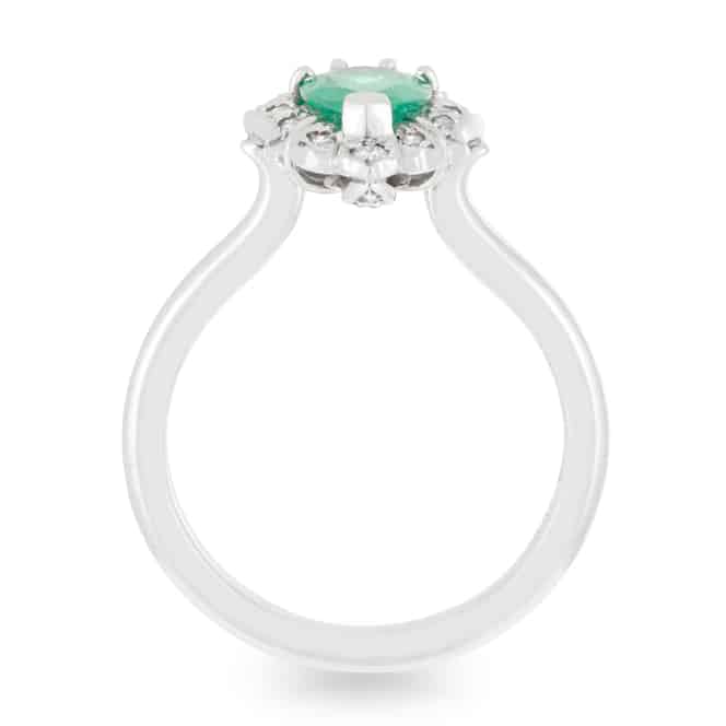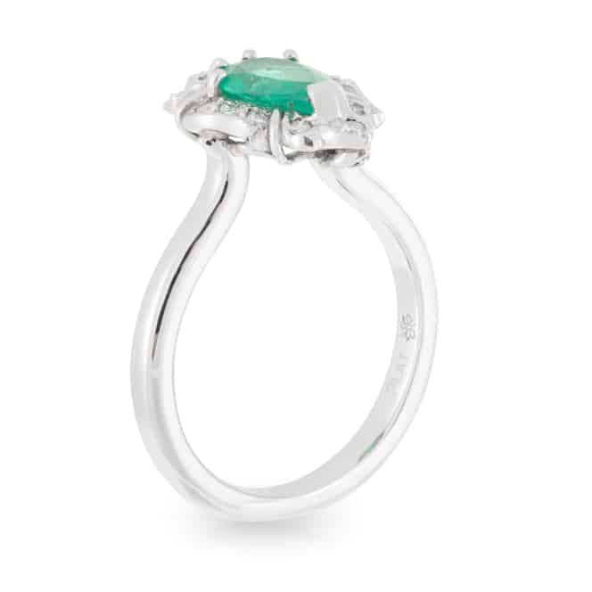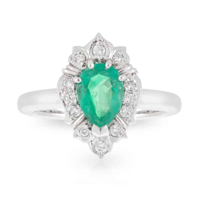 Pear shaped 0.78ct Emerald with Diamond Art Deco Halo