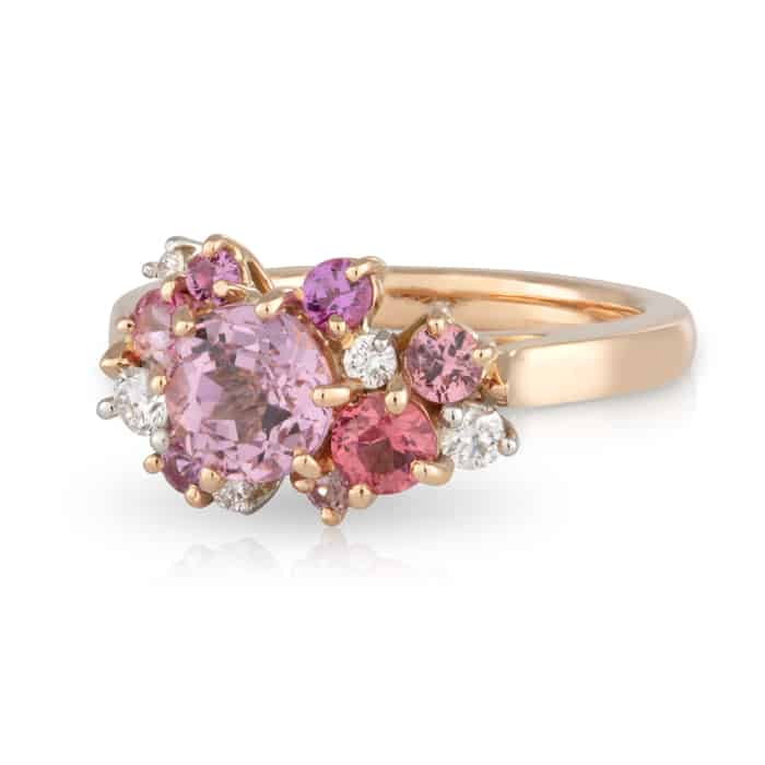 ‘Bubble’ style Pink Spinel and Diamond Cluster Ring.