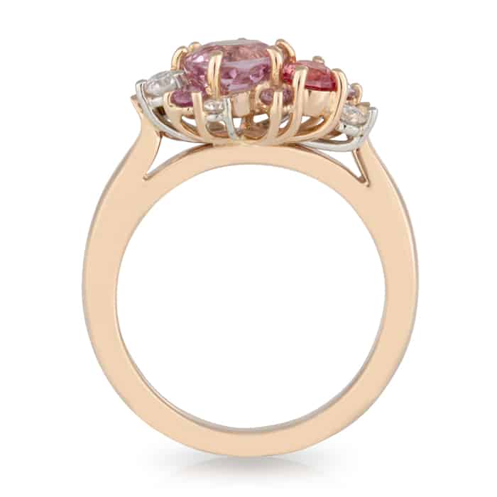 Pink Spinel & Diamond Cluster ‘Bubble’ Style Engagement Ring