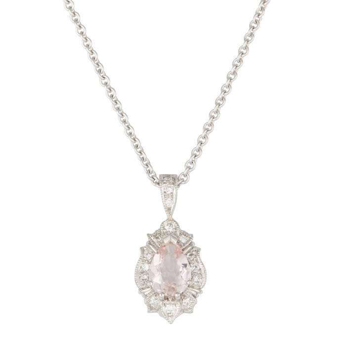 0.92ct Pear Morganite and Diamond Halo Art Deco Pendant