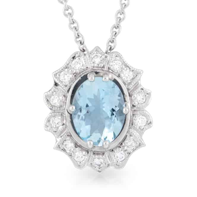 1.40ct Aquamarine and Diamond Halo Art Deco Pendant